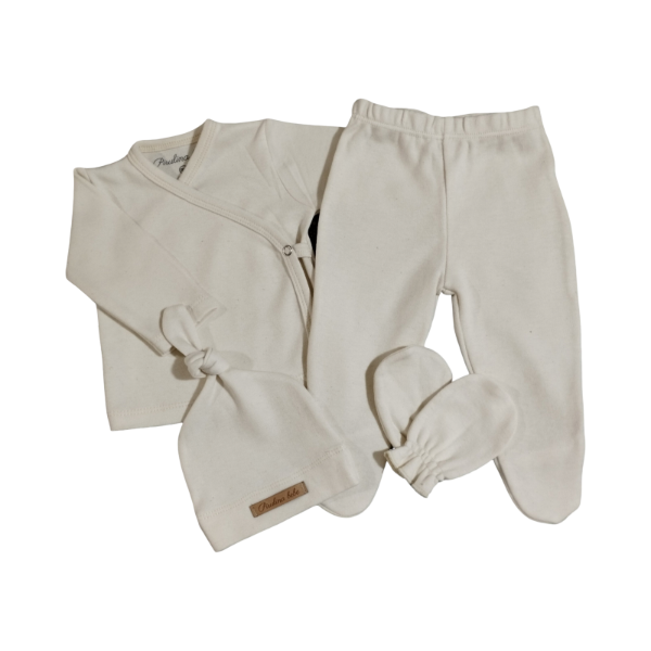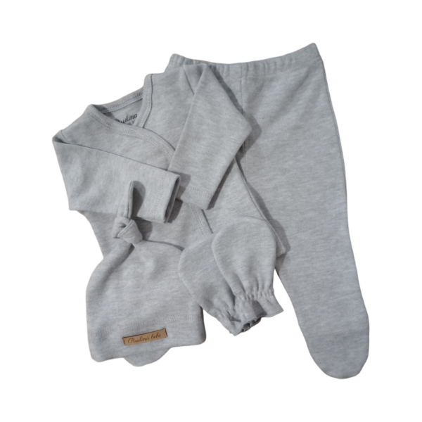 Ajuar de cuatro piezas confeccionados en interlock peinado muy suave al tacto talle único para un peso aproximado de 3k a 4k vienen en cajita